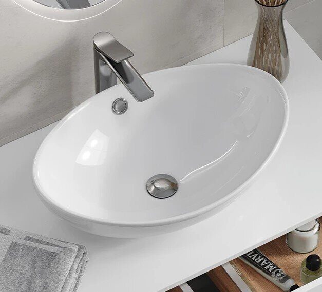 Grossman, Гроссман GR-3015 накладная раковина белая без перелива, без отверстия под смеситель