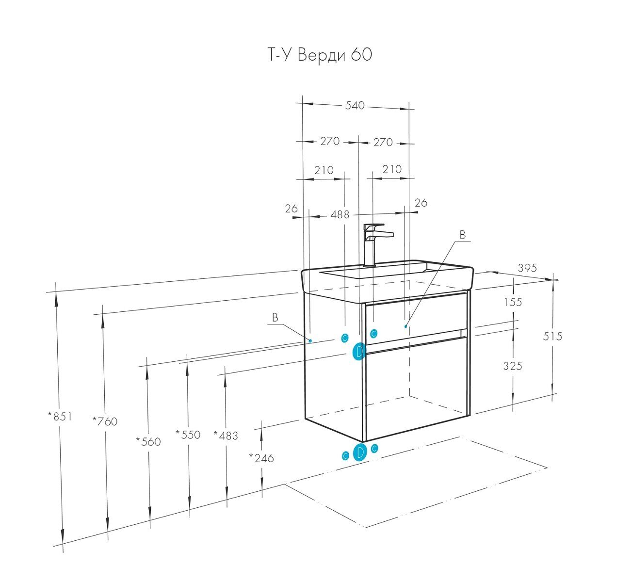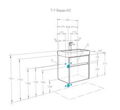 Размеры (мм): Тумба: ширина - 540мм, высота - 515мм, глубина - 395мм
