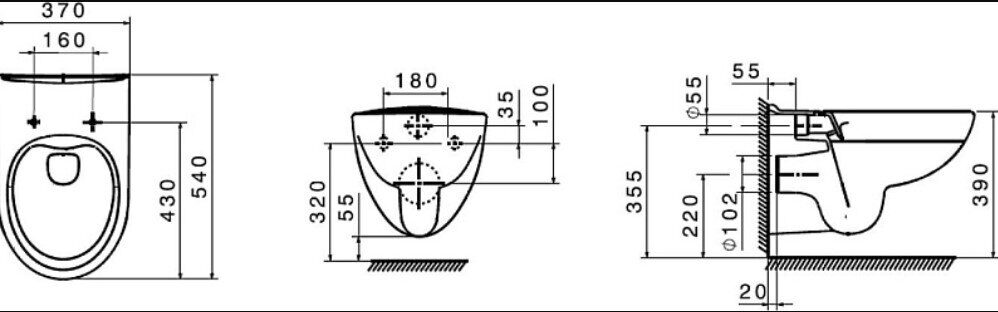 Размер: 33,5х57х34 см. Подвесной. Белый. Без внутреннего ободка. Сиденье приобретается отдельно