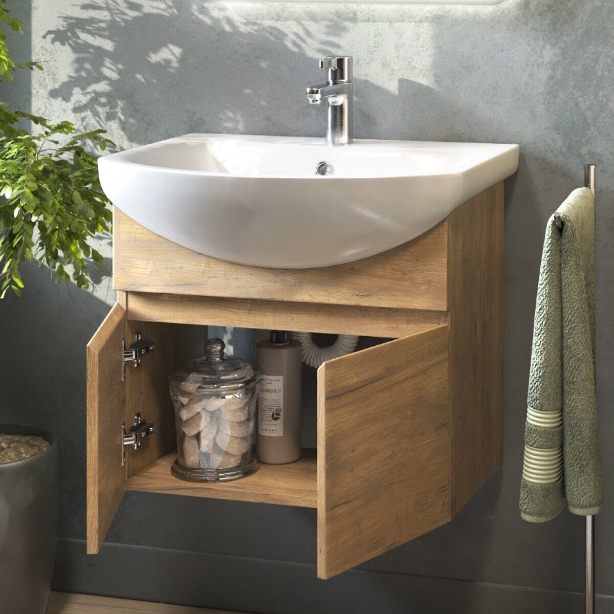 Главная Каталог магазина Мебель для ванной комнаты Wing 600-2-0 тумба подвесная дуб золотой для ванной комнаты с умывальником Балтика 60