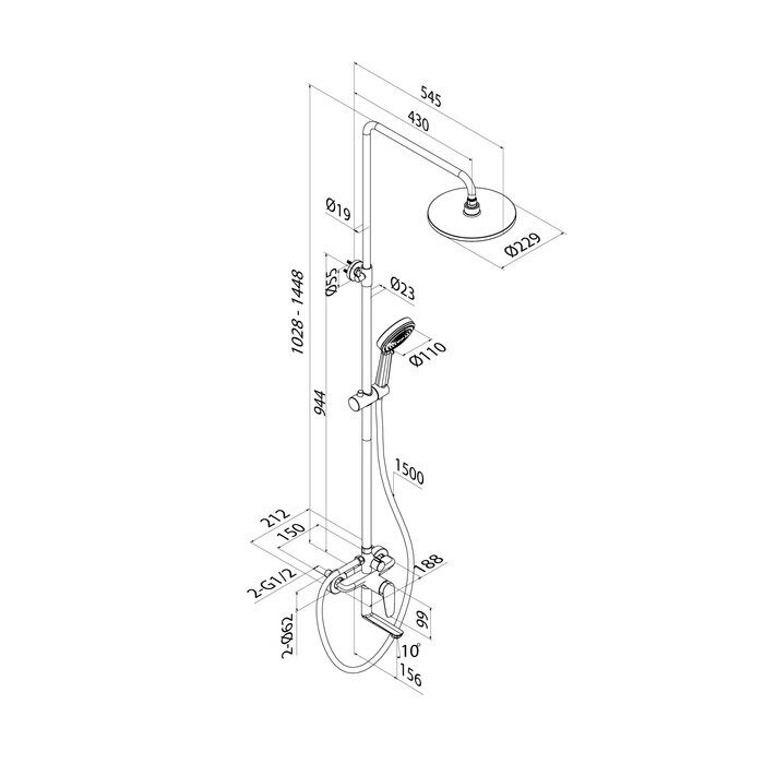 Регулируемая высота стойки 1028-1448 мм – удобно и для самых высоких.
