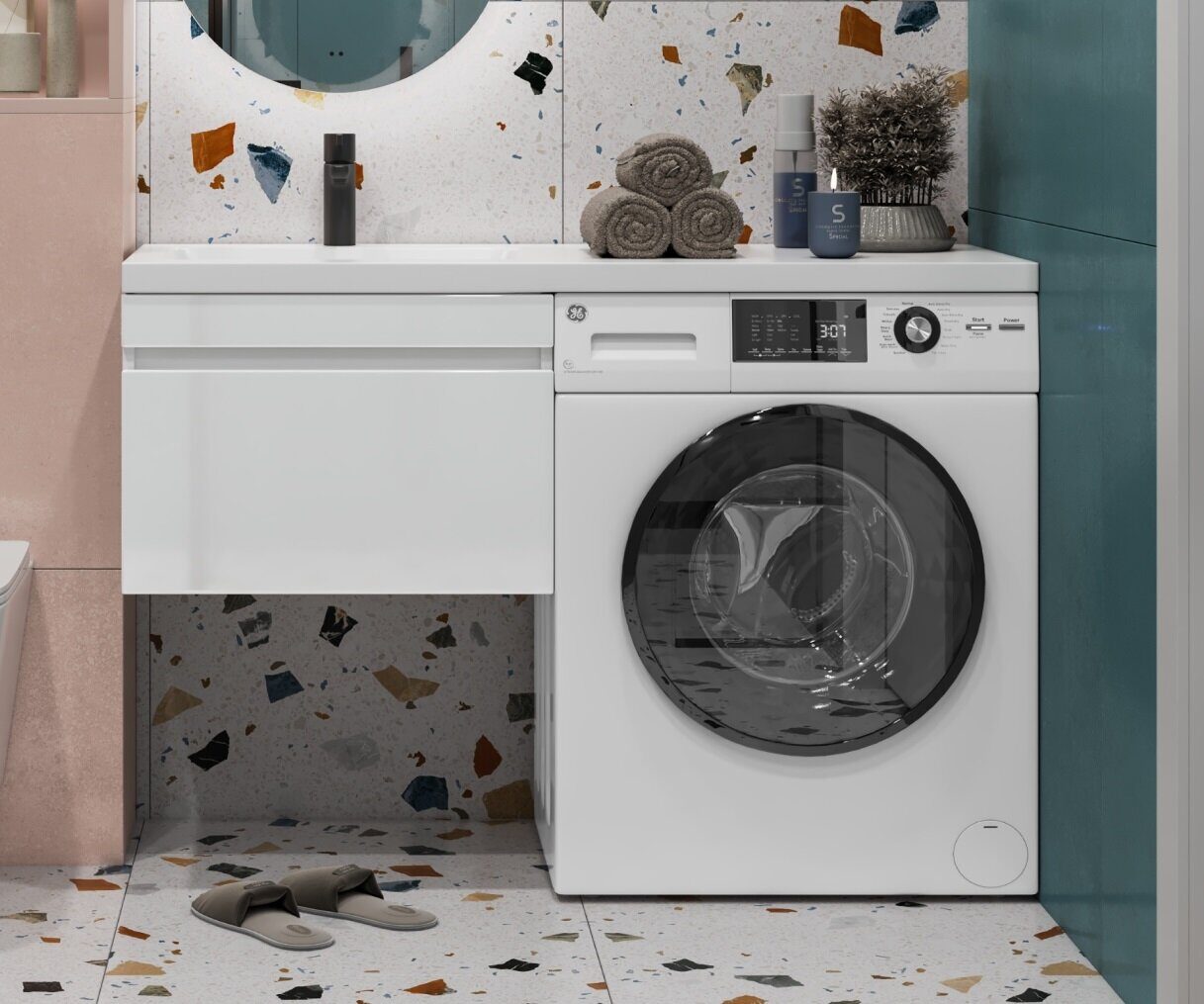 VigoUrban 600-0-1 тумба подвесная белая для ванной комнаты с раковиной-столешницей над стиральной машиной Kamilla 120