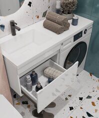 Urban 600-0-1 тумба подвесная белая для ванной комнаты с раковиной-столешницей над стиральной машиной Kamilla 120