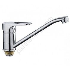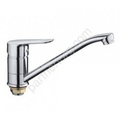 Цвет: хром. На одно отверстие, на гайке. Излив поворотный, низкий, 25 см. Материал: латунь. В комплекте: гибкая подводка 1/2