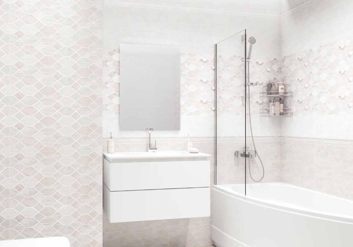 Коллекция керамической плитки Roxana представлена настенной плиткой размером 20×60 см с глянцевой поверхностью, керамогранитом 57×57 см и металлическим бордюром 1,2×60 см. Светлые бежевые тона и сочетание материалов создают элегантный и современный интерьер.