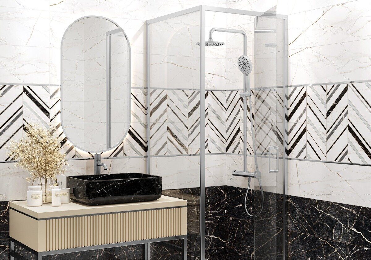 Размер: 24,6х74 см. Цвет: белый, под мрамор. Глянцевая(полированная). Ректификат. Отгрузка: кратно упаковке 7шт/1,27м2