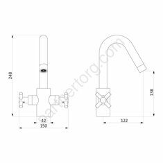 Размер: 38,5х11,9см. Излив 35см, поворотный. Цвет: белый, хром. Материал: латунь. Тип картриджа: Керамическая кран-букса. В комплекте: Душевой шланг 150 см, Душевая лейка, Держатель лейки, Комплект отражателей, Комплект эксцентриков, Аэратор