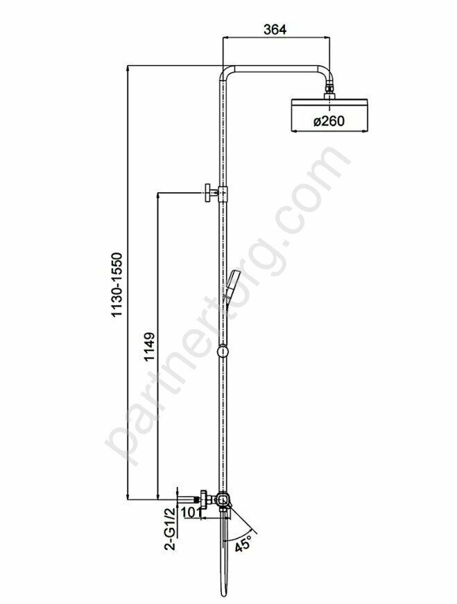 Размер верхнего душа, мм: 260