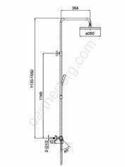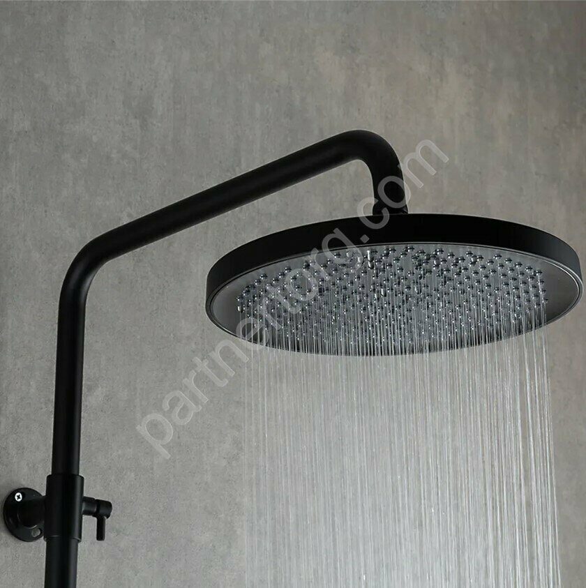 Комплектация: Смеситель; Душевая стойка; Набор эксцентриков и отражателей; Душевой шланг; Душевая лейка; Держатель лейки на стойку; Верхний душ