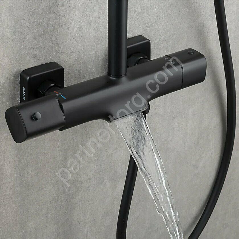 Gappo G2495-76 душевая стойка с термостатом черная, каскадный излив