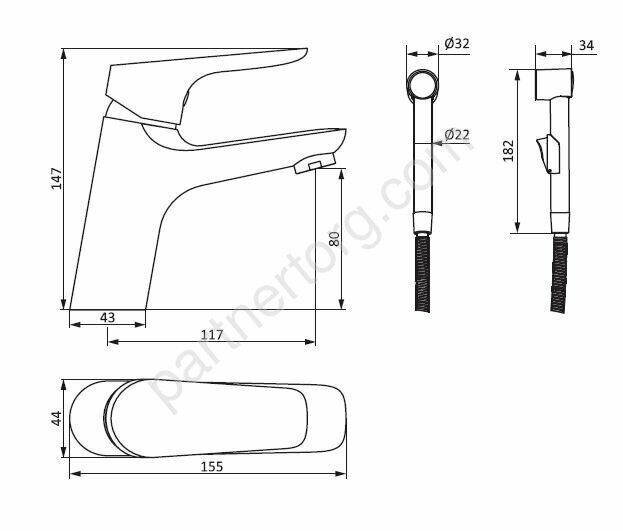 Главная Каталог магазина Сантехника Смесители Смеситель для умывальника без дк с гигиеническим душем 770300000 Origin Bit