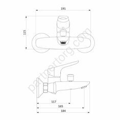 Излив поворотный, настенный. Длина излива: 30 см. Цвет: хром. Материал: силумин. В комплекте: душевой шланг 150 см, душевая лейка, держатель лейки, комплект отражателей, комплект эксцентриков