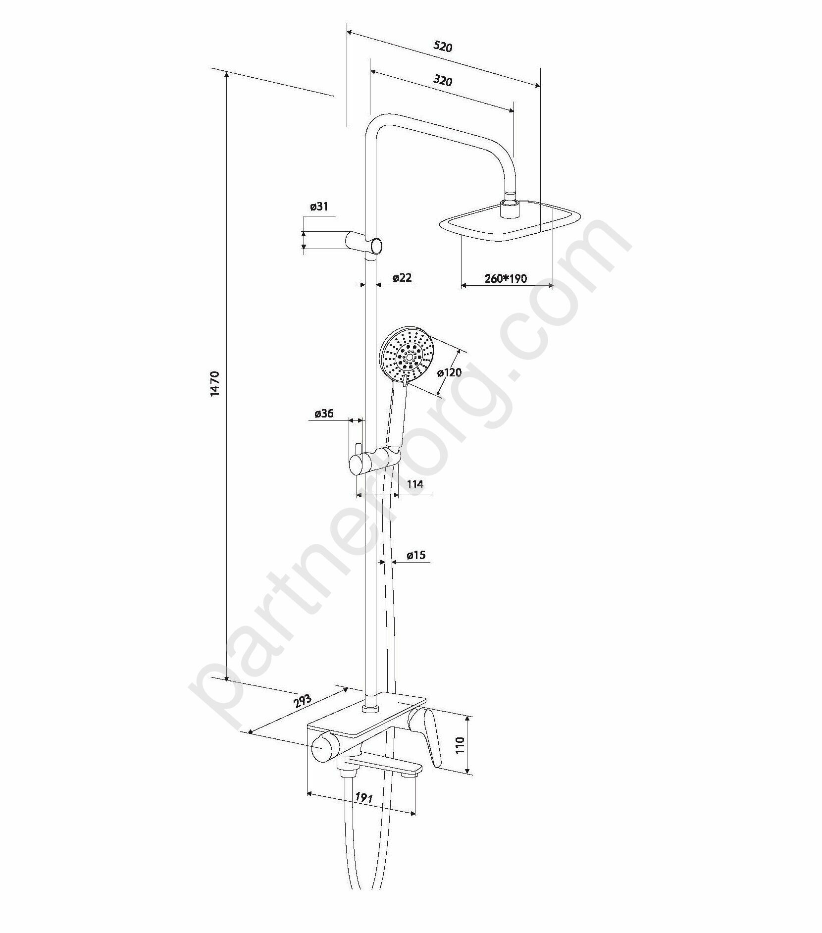 Главная Каталог магазина Сантехника Смесители Душ. система со смесителем-полкой: верх. душ 260*190, ручн. душ 120, 5 режимов 977720000 Origin Bit