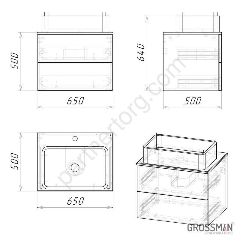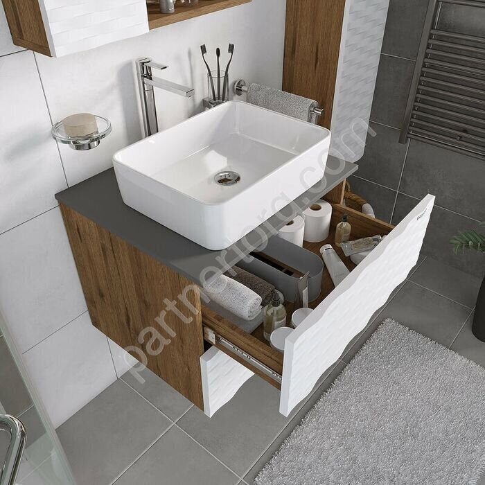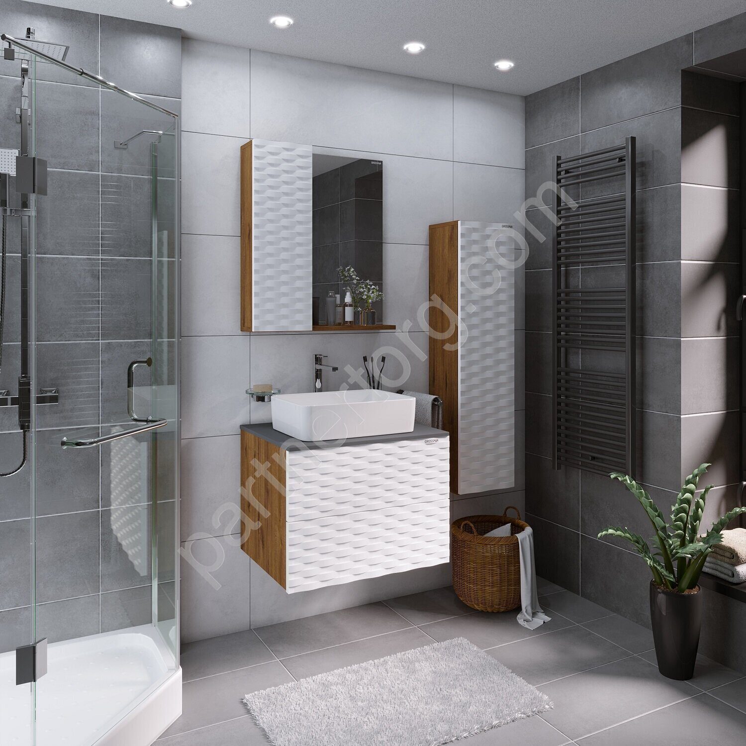 GrossmanАльба 65 белая, Дуб веллингтон тумба в ванную комнату Grossman