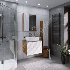 Тумба подвесная "АЛЬБА-65 см" - функциональное и практичное исполнение. Белый матовый цвет с 3D рисунком безупречно сочетается с фактурой под дерево и позволяет тумбе органично вписаться в интерьер ванной комнаты.