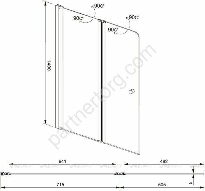 Aquanet Practic, 00254247, шторка на ванну раздвижная c боковой стенкой, 150х80х150 см, прозрачное стекло, профиль хром (AE10-B-150H150U-CP + AE10-F-80H150U-CP)