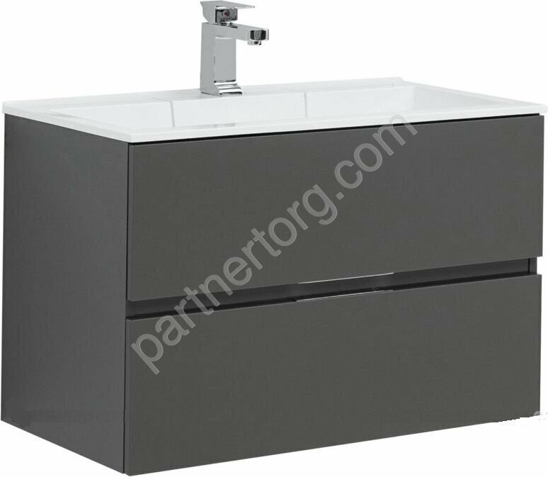 Алвита new 60 тумба серый антрацит подвесная для ванной комнаты 2 ящика с раковиной-столешницей Flat 60 Aquanet