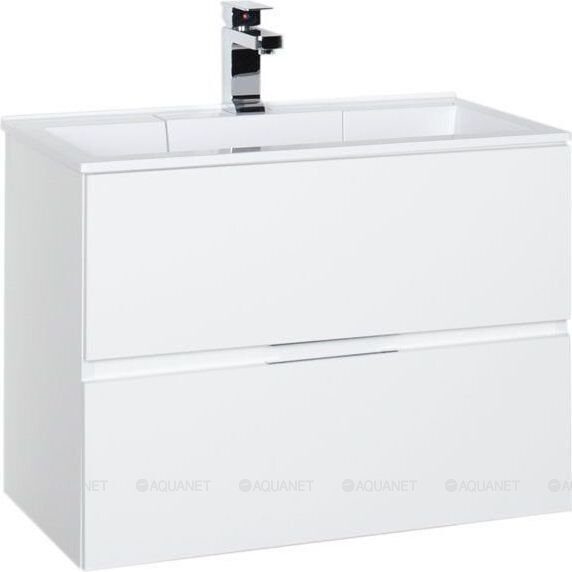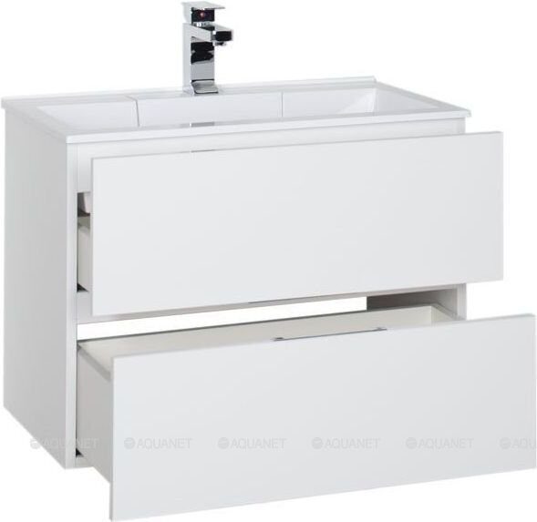 Алвита new 70 белая матовая тумба для ванной комнаты 2 ящика с раковиной-столешницей Flat 70 Aquanet