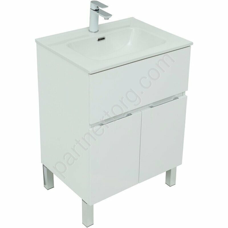 Алвита New 60 тумба белая для ванной комнаты 1 ящик, 2 дверцы с раковиной-столешницей Flat 60 Aquanet