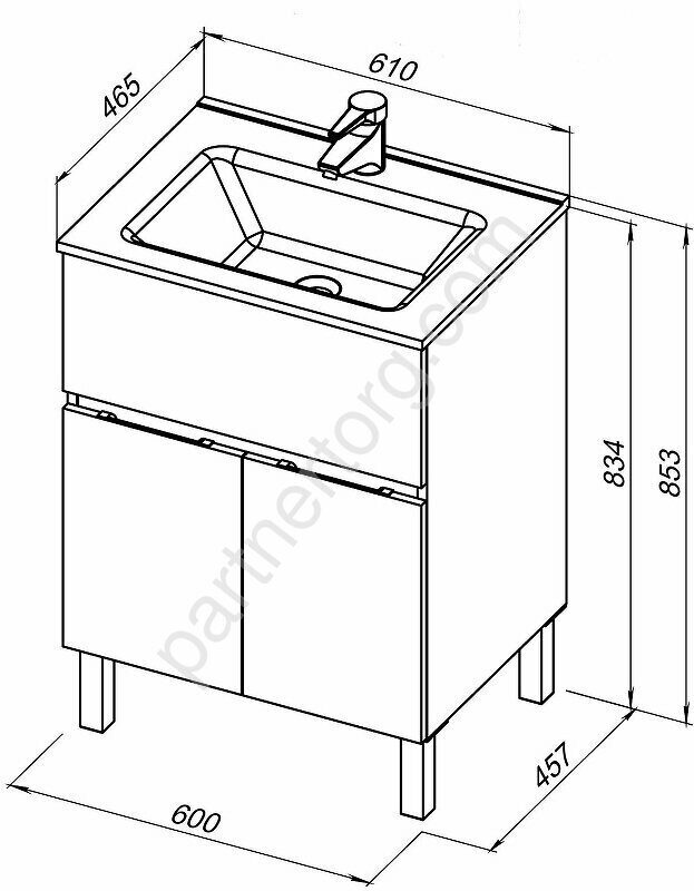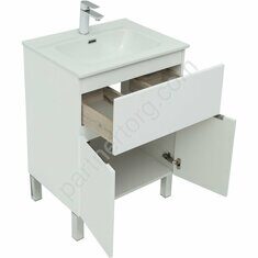 Размер: 60х45,7х83,4 см. Цвет: белый матовый. Комплект: 1 ящик, 2 дверцы, раковина-столешница Flat 60