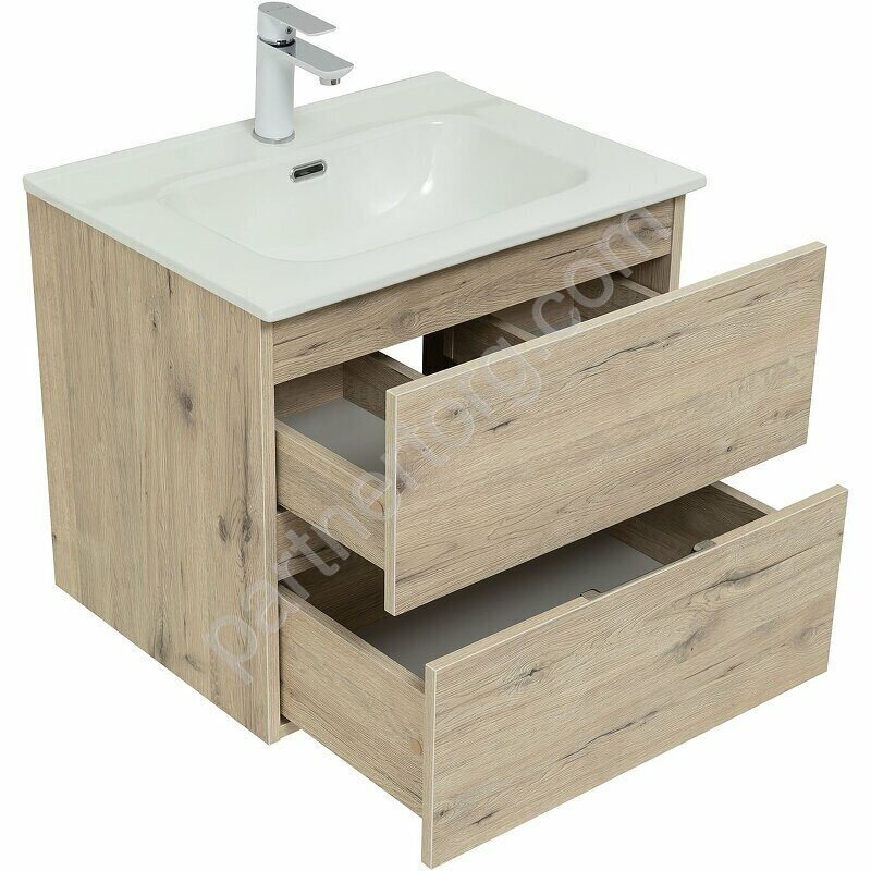 Размер: 60х45,7х51,3. Цвет: дуб веллингтон белый. Комплект: 2 ящика, раковина-столешница Flat 60