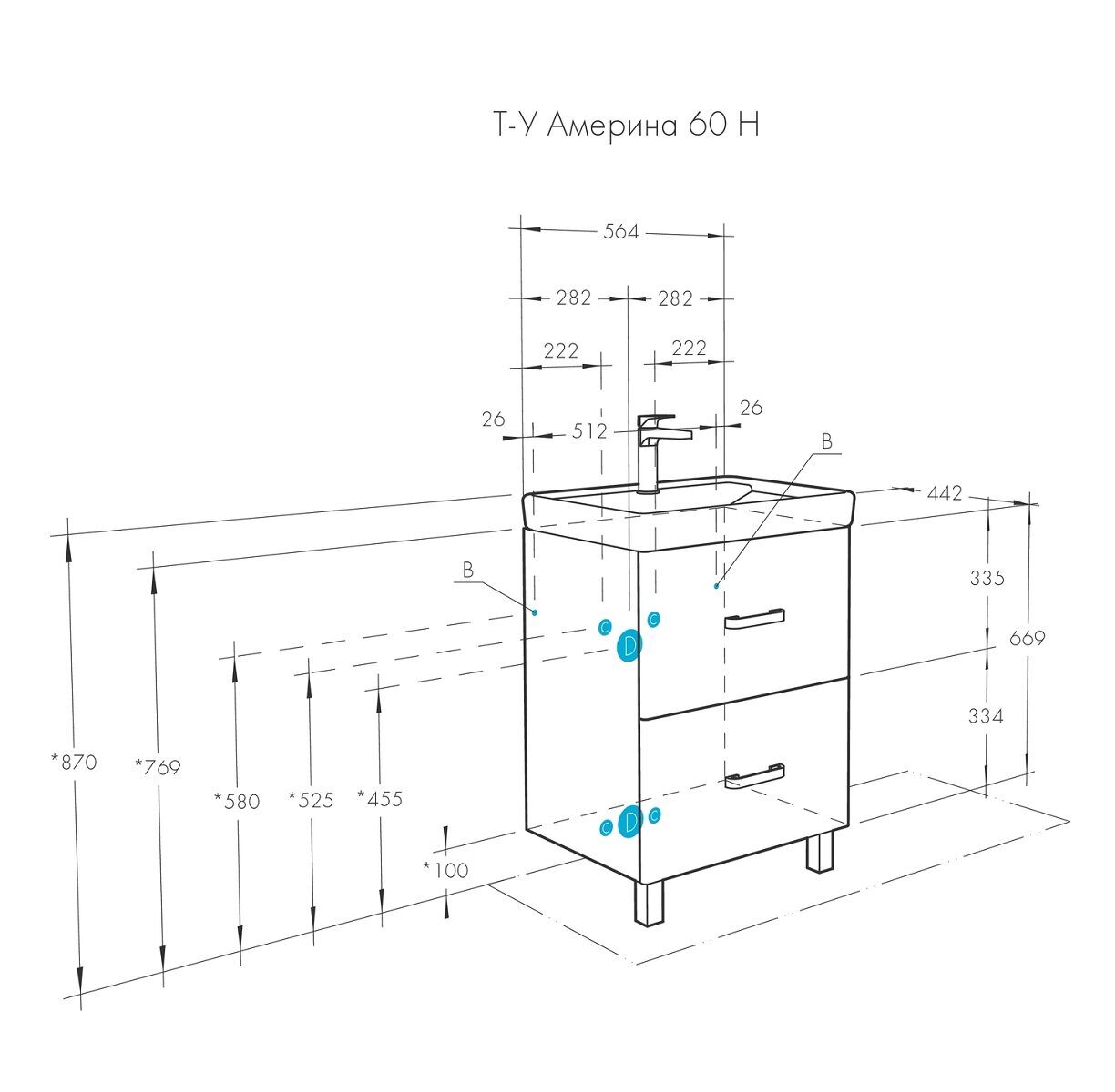 Раковина: За указанную цену в комплект входит раковина Тигода 60 из санфарфора, которая не требует отдельного крепежа и устанавливается в пазы напольной тумбы. Установка проста и не требует квалифицированного специалиста.