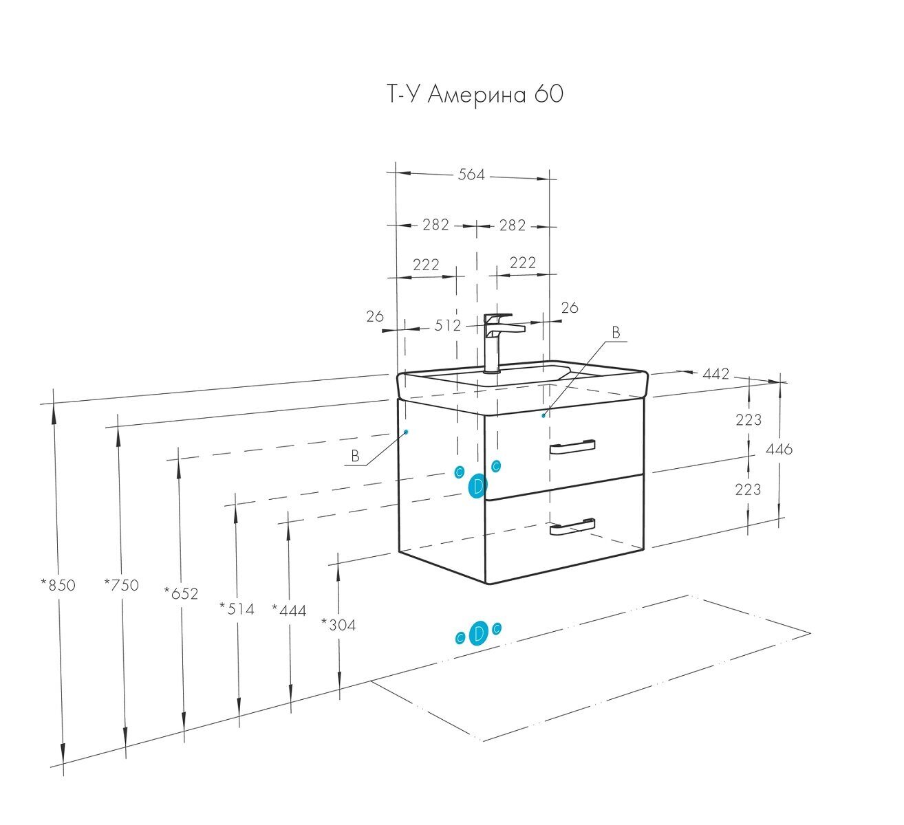 Размеры (мм): Тумба Америна 60: ширина - 560, высота - 460, глубина - 439