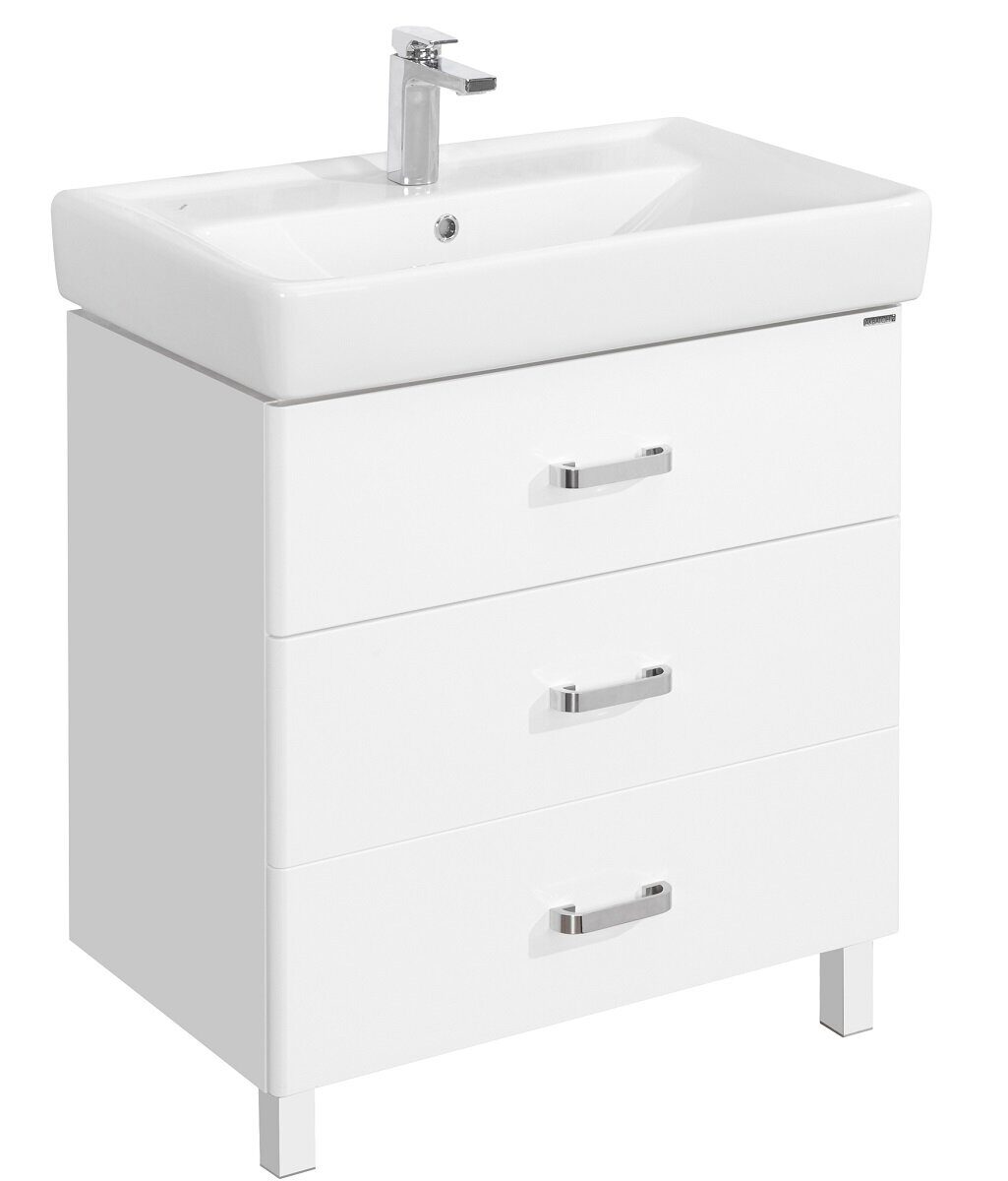 Размер (см) 76х68.8х44.2. Цвет: белый глянец. Комплект: ручка - 3 шт., Ящики - 3 шт., Ножки - 2 шт. Раковина Тигода 80