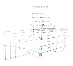Комплект поставки: Тумба Америна 80 М (ручки – 3шт, ящик- 3 шт, ножки- 2шт), раковина Тигода 80
