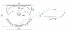 Размер: 59х48х20см. Белый. С отверстием для установки смесителя, с переливом, с возможностью установки к стене на пьедестал.