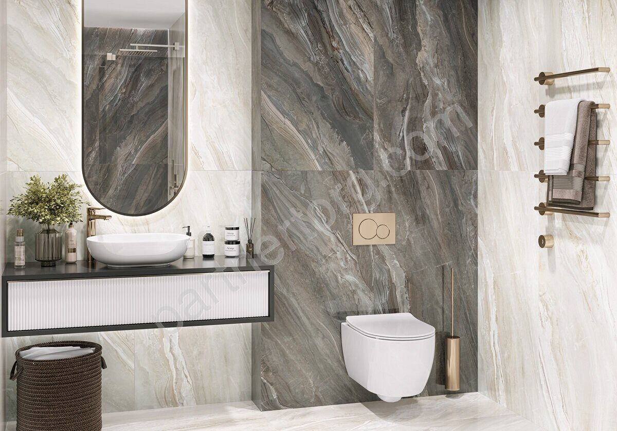 Мрамор Argentina обладает текстурой с множеством оттенков и градиентными прожилками, превращая его в элегантный керамогранит для интерьера. Коллекция включает два темных оттенка — Dark и Taupe, и два светлых — Crema и Gray. Светлые оттенки идеально сочетаются с темными или могут быть использованы самостоятельно, создавая изысканный фон и придавая пространству особое настроение.