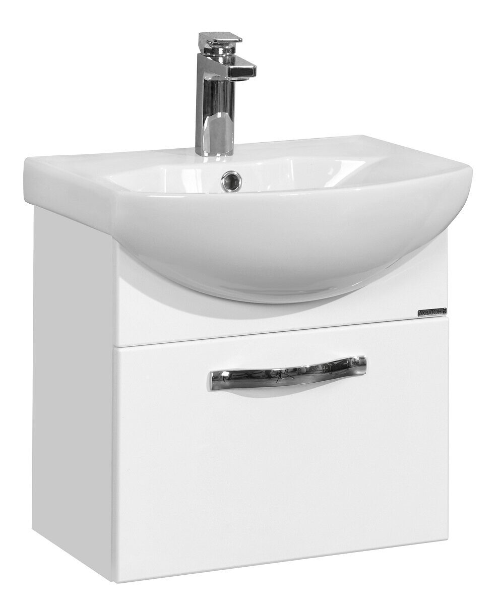 Ария 50 см тумба подвесная белая для ванной комнаты с раковиной Смайл 50 Aquaton