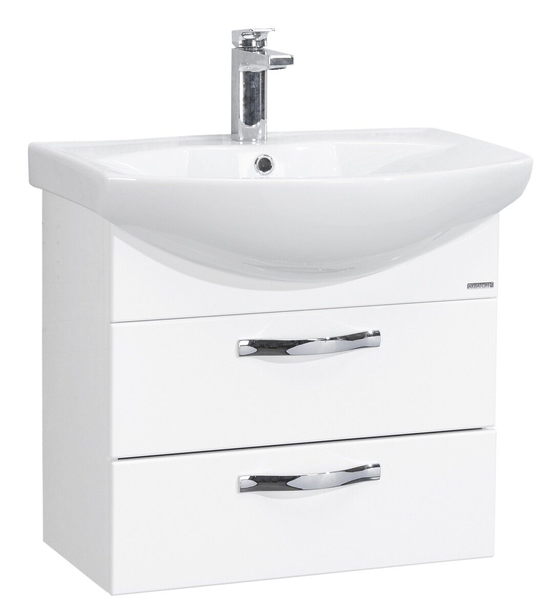 Ария 65 М см тумба подвесная белая для ванной комнаты с раковиной Смайл 65 Aquaton