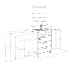 Раковина: Раковина "Смайл 65" из санфарфора, которая не требует отдельного крепежа и устанавливается в пазы напольной тумбы. Установка проста и не требует квалифицированного специалиста.