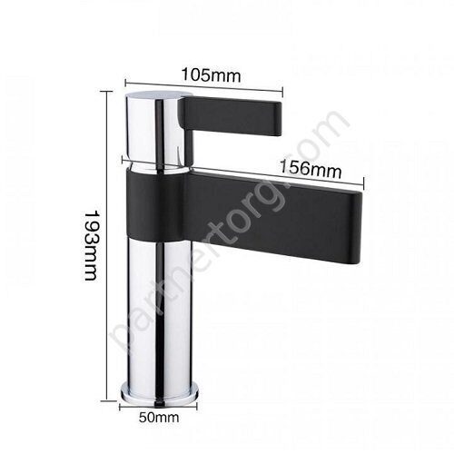 Размер: 15,6х19,3см. Цвет: черный, хром. Материал: латунь. Излив: стационарный, средний. Способ монтажа: На одно отверстие. С аэратором.