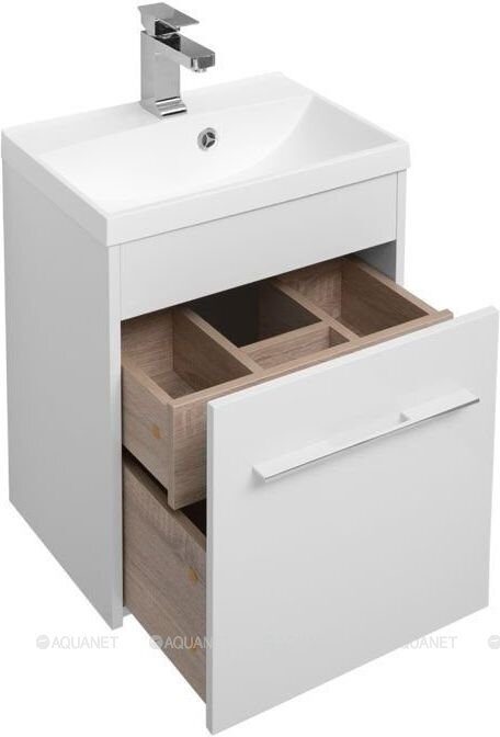 Главная Каталог магазина Мебель для ванной комнаты Августа 50 тумба белая для ванной комнаты с раковиной-столешницей Нота 50 Aquanet