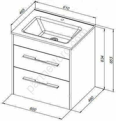 Размер: 60х63,4х46см. Цвет: белый глянцевый. Комплект: 2 ящика, ручки, раковина-столешница Flat 60