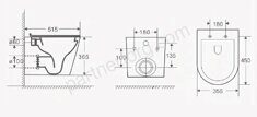 Размеры: 515х365х355 мм. Тип: подвесной, безободковый. Сиденье: дюропласт, с микролифтом. Бесшовный литой корпус. Глазурированная внутренняя поверхность.