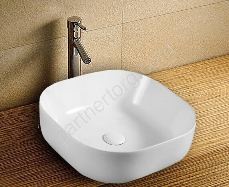 Подходит практически любой, подходящий по размерам настольный умывальник (приобретается отдельно)