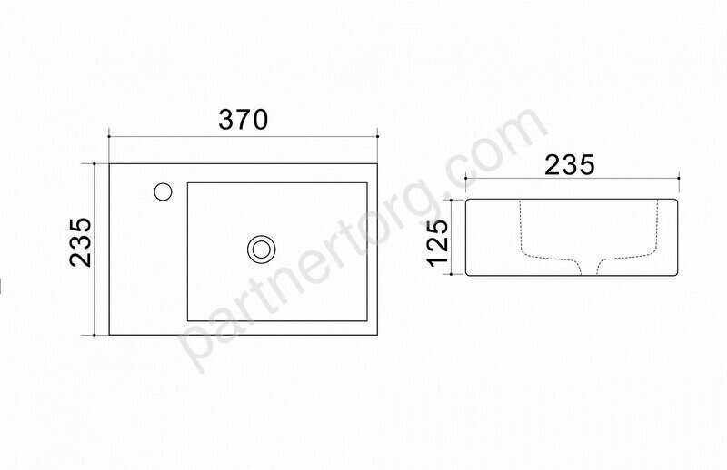 Размеры: 37х23,5х12,5см. Цвет: белый. С отверстием под смеситель слева.