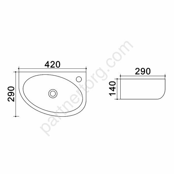 Размеры: 42х29х14см. Цвет: белый. С отверстием под смеситель справа