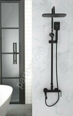 Душевая стойка со смесителем для ванны, верхним и ручным душем. Регулируемая высота верхнего душа.