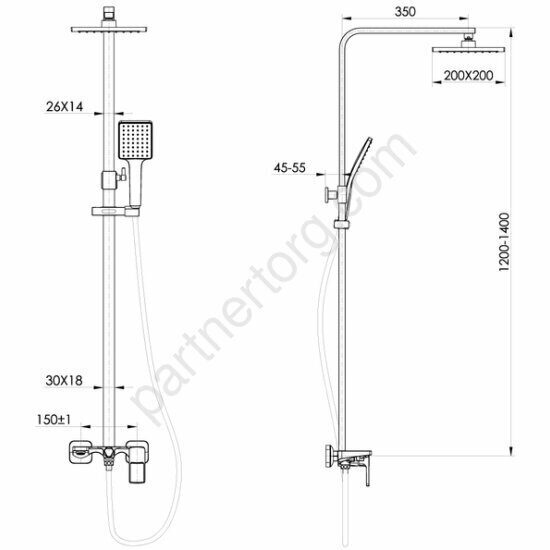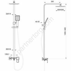 Особенность: верхняя лейка - 1 режим, размер 200х200 мм, ABS-пластик; ручная лейка - 1 режим, размер 95х110 мм, ABS-пластик