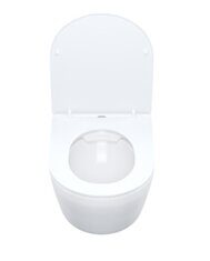 Размер: 495x365x370. Санфарфор. Без ободка внутри чаши. Сиденье дюропласт с микролифтом. Округлая форма чаши, тонкое сиденье с функциями SoftClose и EasyFix