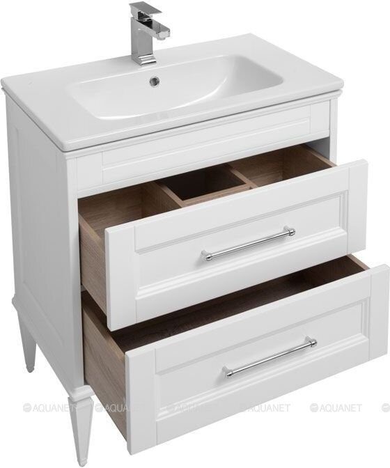 Размер тумбы: 78,4х47,2х65 см. Цвет: белый матовый. Комплект: 2 ящика, ручки, раковина-столешница Бостон 80