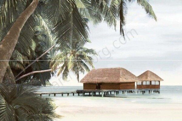Размер: 60х40 см. Цвет: мультиколор, с рисунком (два бунгало). Глянцевое (полированное). Отпускается поштучно (комплектом из 2 плиток)