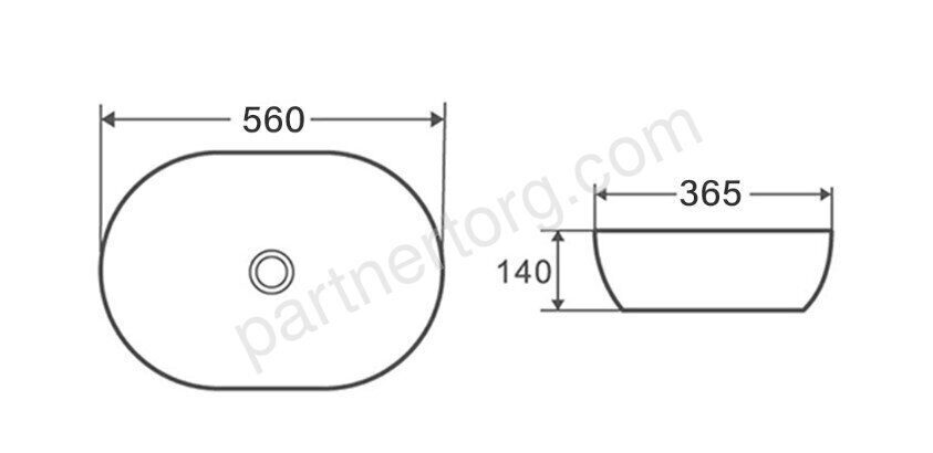 Размер: 56х36,5х14см.  Санфарфор.  Монтаж на столешницу. Без отверстия под смеситель. Без перелива.