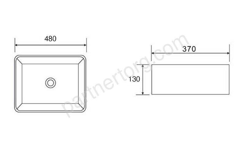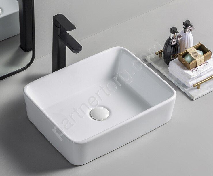 Размер: 48х37х13см.  Санфарфор.  Монтаж на столешницу. Без отверстия под смеситель. Без перелива.
