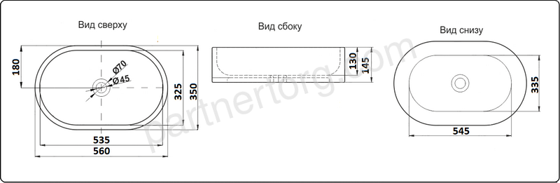 Размеры: 56,5х36,5х15,5см. Цвет: белый. Без перелива. Без отверстия под смеситель