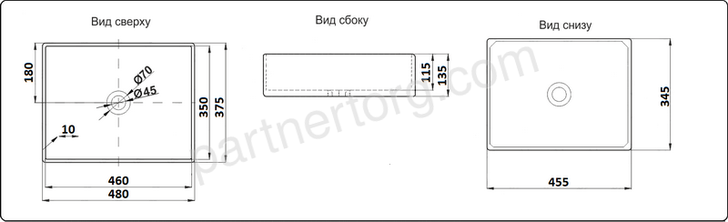 Размеры: 48х37х13см. Цвет: белый. Без перелива. Без отверстия под смеситель